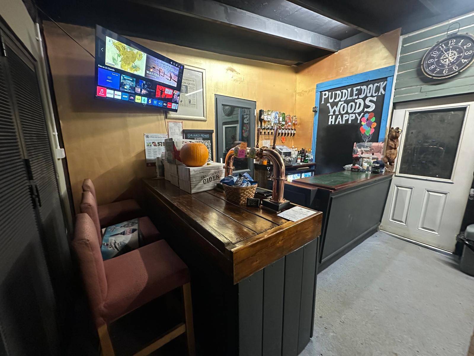 New for 2025, Puddledock Woods now also boasts a cosy bar and guest lounge, complete with full-sized pool table! Within, we serve a wide range of alcoholic and non-alcoholic beverages. We are often complimented on our selection of quality ales, lagers and ciders, the majority of which are sourced locally. If that’s not for you, non-alcoholic beers, soft drinks or a warming cup of tea, coffee or hot chocolate are also available!